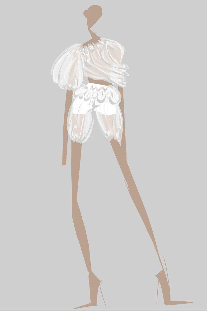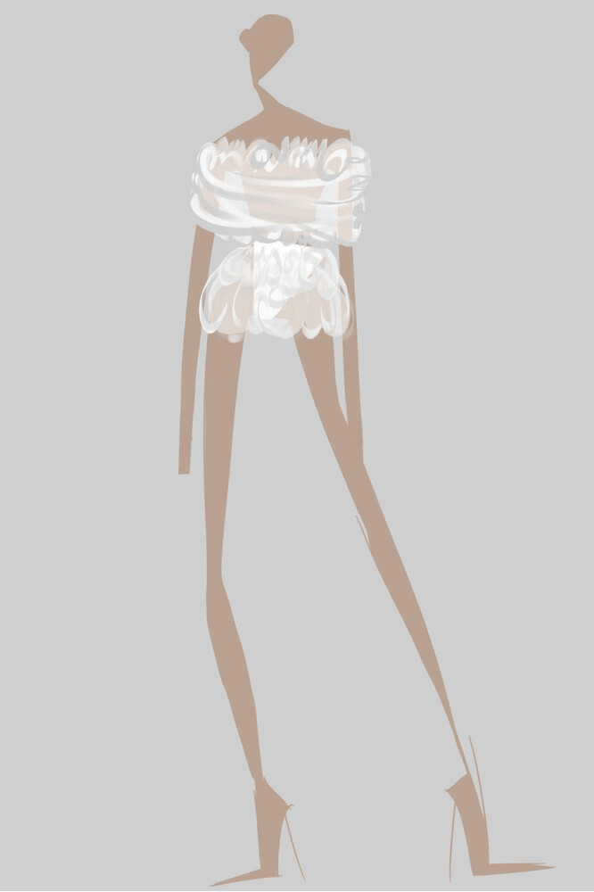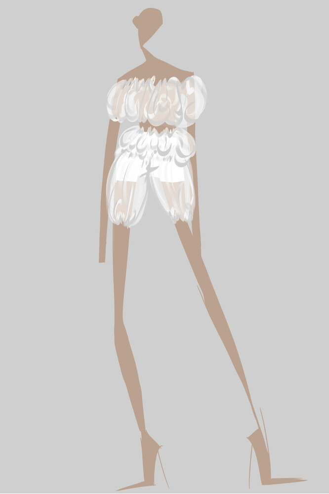 Vediamo in preparazione Lisa Hua con il suo progetto “Reframe the Glow”, ispirato alle installazione di luci artistiche contemporanee, Rebecca Cezza con la collezione “Orbital”, che re-interpreta la fotografia di Peter Lindbergh, ed infine Celeste Zacchi con il progetto “EXO” ispirato alle solide e geometriche forme del brutalismo architettonico.